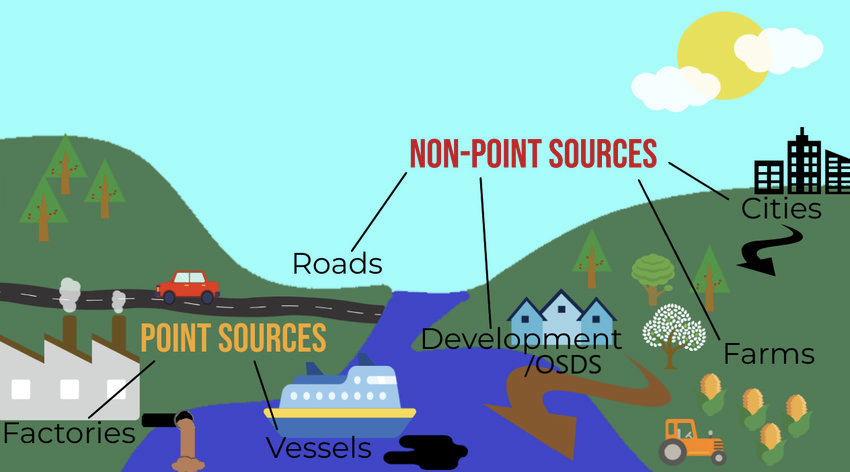 • Point sources are domestic sewage and industrial waste.